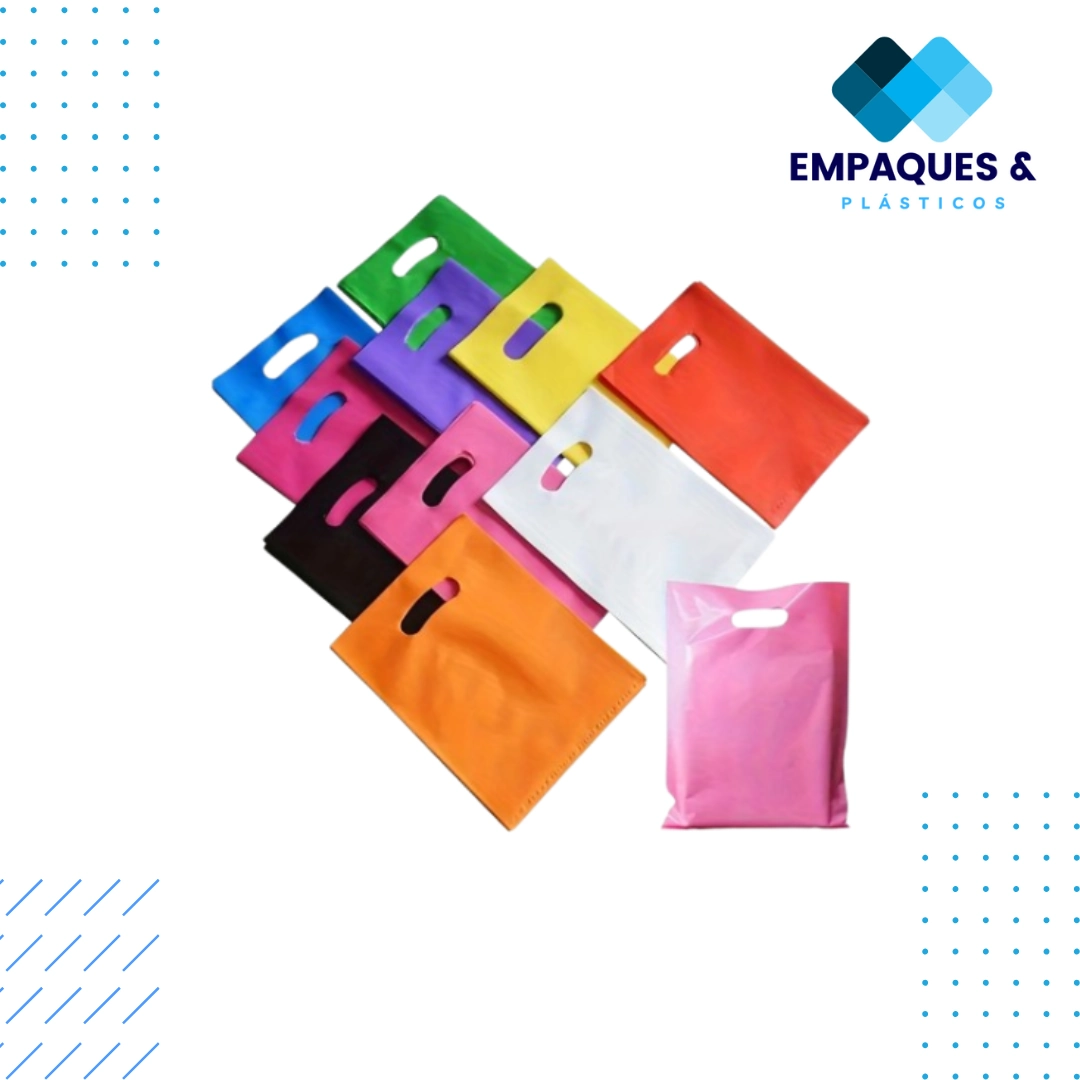 En Empaques y Plásticos, ofrecemos bolsas troqueladas personalizadas con logo, permitiendo que cada negocio refuerce su identidad y mejore su impacto visual. La impresión de calidad y la posibilidad de elegir diferentes colores y grosores hacen de estas bolsas una herramienta de marketing efectiva.